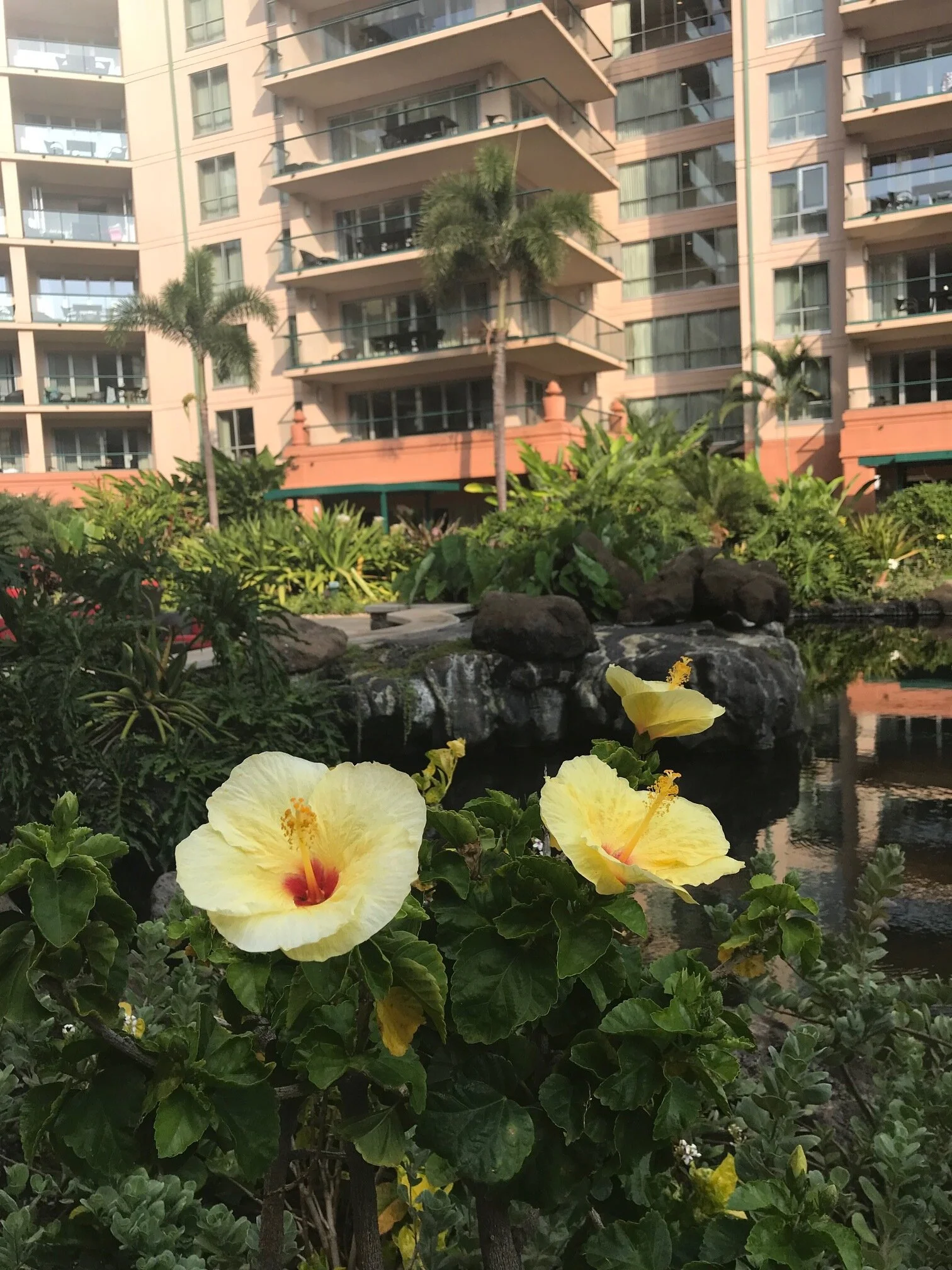 I adorned the Ipu Heke with a fern from the Tropical Thinlits and a Crushed Curry Flower that was punched with our Bunny Builder Punch.  I placed a red rhinestone in the center of the flower to remind me of my favorite Hawaiian Hibiscus called the "Hula Girl" Hibiscus.   I take photos of these beautiful flowers all the time.  Here is a photo I took when I was in Maui last week.  Don't you think these Hula Girls are pretty?