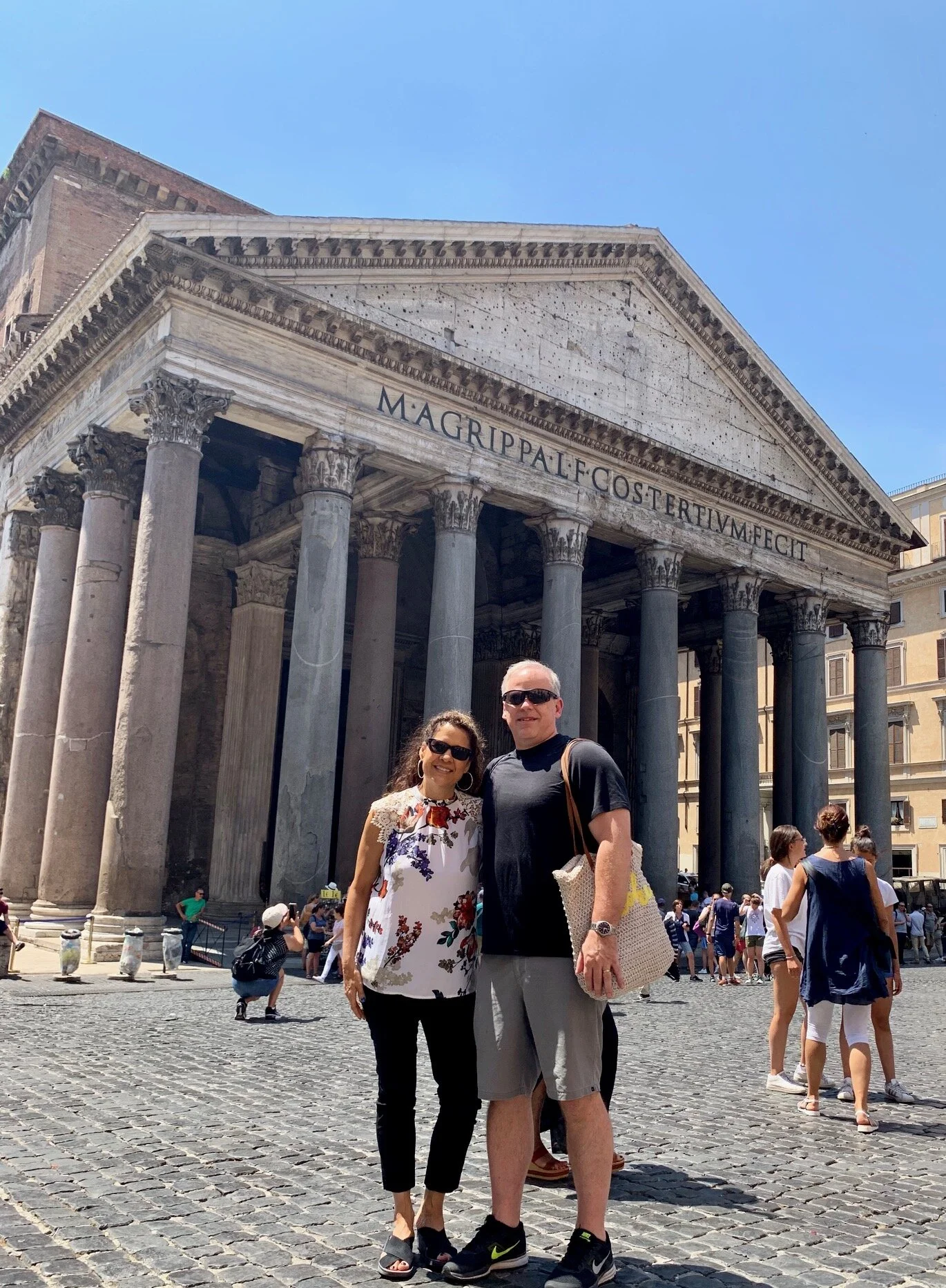 After the Trevi Fountain we walked over to the Pantheon. That day as we traveled through the city I could feel a heaviness in my lungs, fatigue was setting in and it was quickly becoming apparent that my symptoms had returned. You see a smile on my face in this picture but there is also a growing concern happening within because I could feel my respiratory challenges returning.