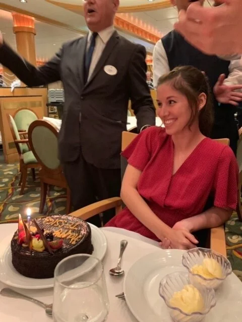 After the party we went to our final dinner together. Gathering for dinner at the end of a long day is always my favorite part of the cruise. At this dinner we surprised Jessica with a cake as her birthday is this week and we knew she would be away at camp, so we wanted to celebrate as a family.