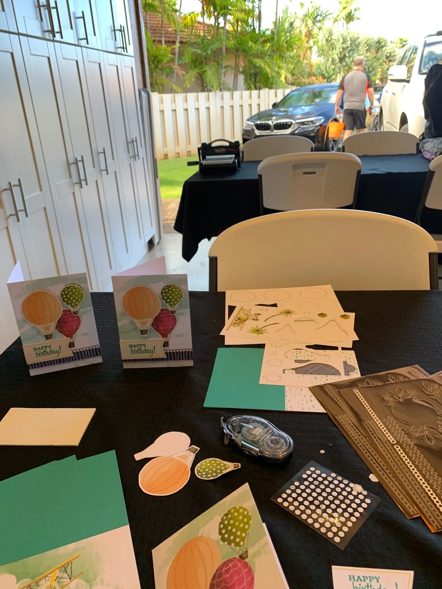 One thing that has been on my mind is stamping. Since I haven’t felt myself, its been tough to do the work I normally do to design cards for classes and events. I also am having an issue with the ac unit in my studio so I only work out there during the cooler parts of the day. Since Derek was going to wash his car and I was enjoying spending time with him, I decided to open up the garage door on my studio and let the fresh air in. That way I could stamp and talk to Derek while he worked.