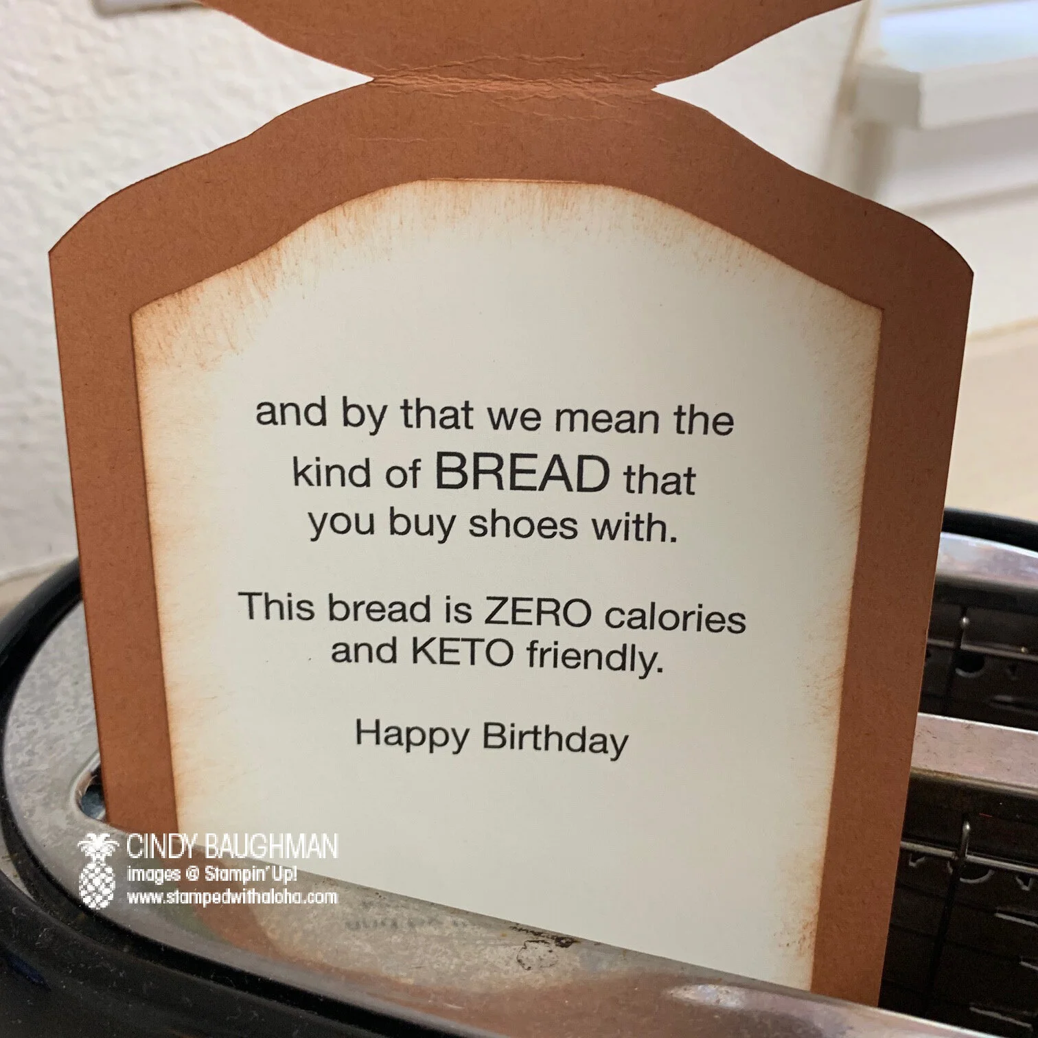 So with bread in mind, we decided to give her a monetary gift instead. After all, money is sometimes referred to as “bread” right? Since I am a theme loving, matchy-matchy person, I decided to create an out of the box bread card to go with her monetary gift.