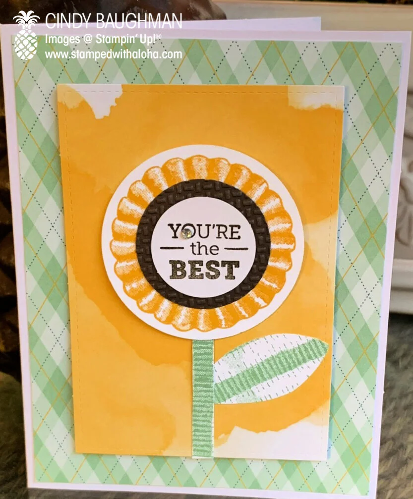 Another Alternative card I did with the August 2020 kit was this one below. I used the stamps in the kit to create a sunflower.