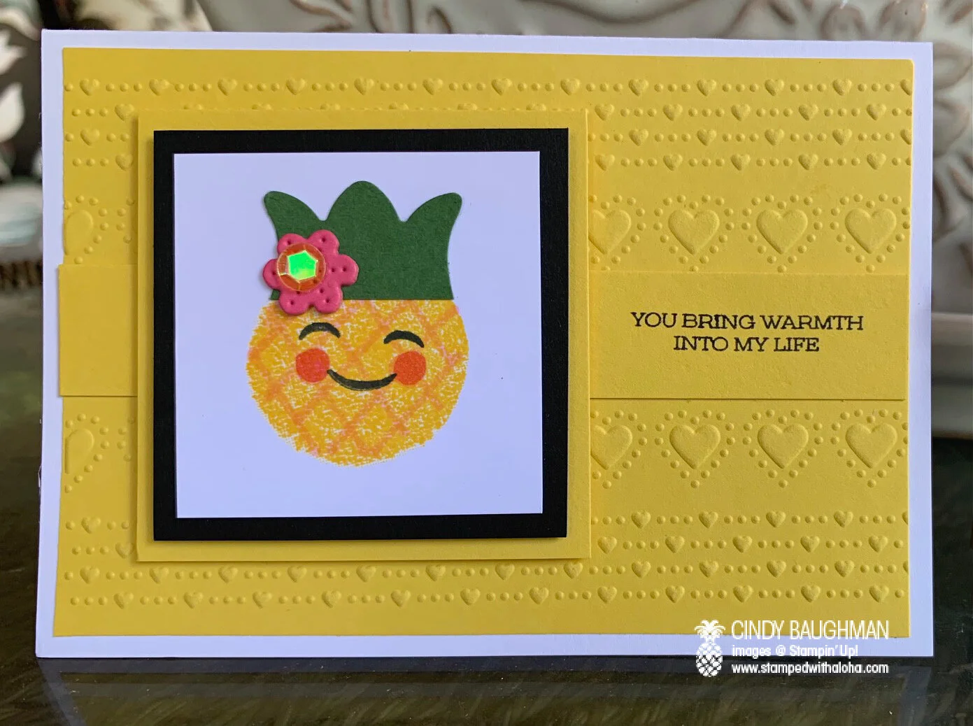 I saved this project to share last because this is the only project that I made a public video for. I wanted to show the simple way I used this set to create an “out of the box” pineapple. This sweet little treat box is filled with gummy pineapples and was a favorite project by many who took my class.
