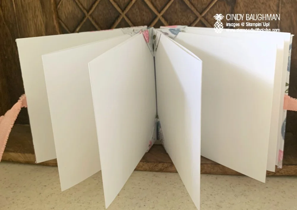 I was taught this project by my friend demonstrator Missy Shipman. Normally a project like this would be out of my comfort zone but with a little bit of practice, I learned how! Now I can’t stop making these fun books, they make such great gifts! The best part about the book is the pretty binding which I now realize I forgot to take a photo of. Don’t worry, I will be making a public video of this project in the near future so be sure to subscribe to my YouTube channel so you won’t miss it.
